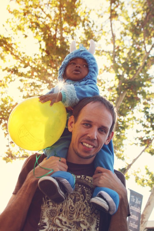 I stayed out of the parade so I could snap pictures of Big T and my little snugglebug. Little T started out walking, but he soon decided that Daddy’s shoulders were much better.