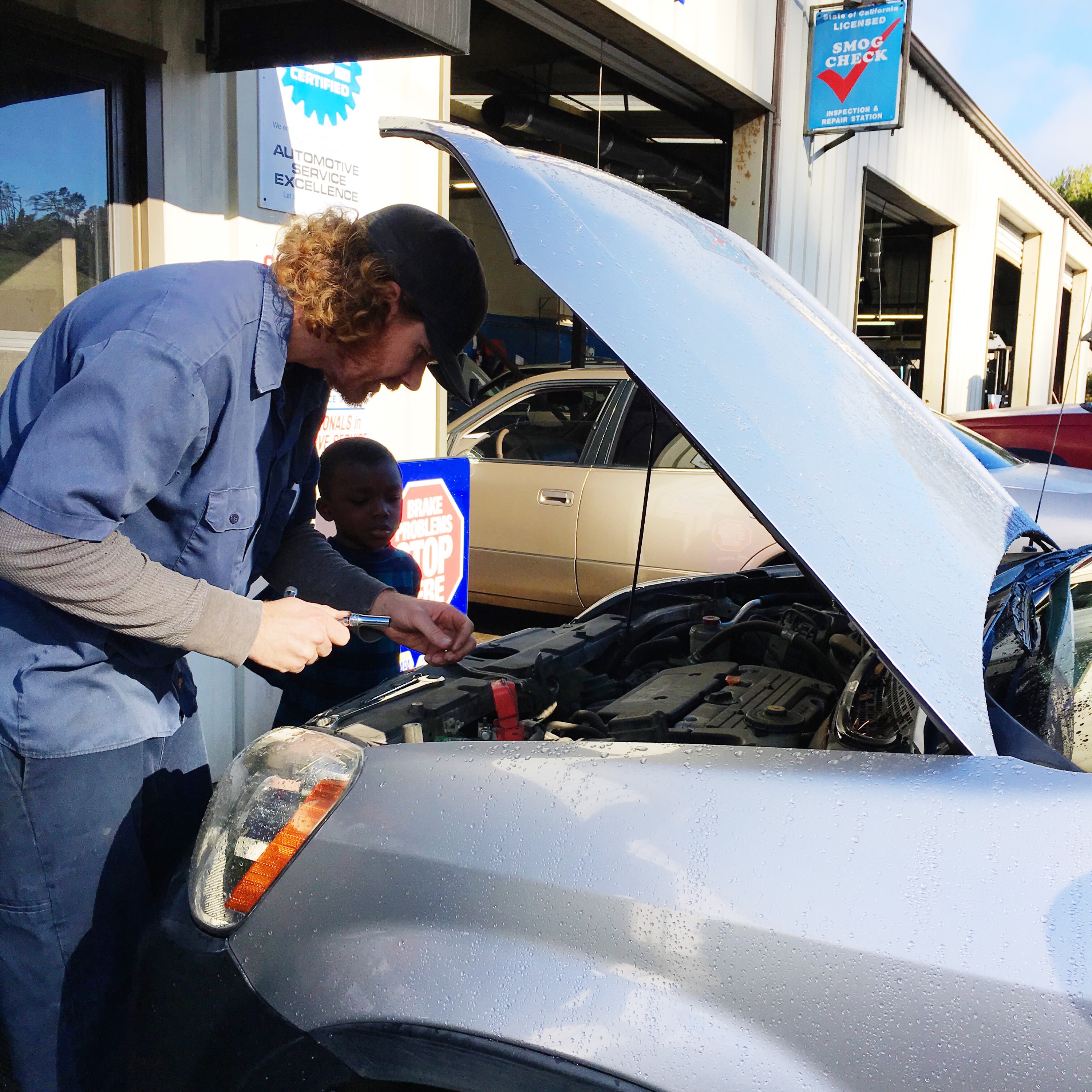 The next day, we got up early to make our way home from Cambria, but the car wouldn’t start. What started out as a frustrating thing, turned out to be awesome because Little T was in heaven visiting with the mechanic. He even got to hold his tools and “help” him with the car. Little T talked about the mechanic for half the ride home, he really made an impression on him. So much, that Little T asked the mechanic what his favorite transformer was, and promised to give it to him for Christmas. :p